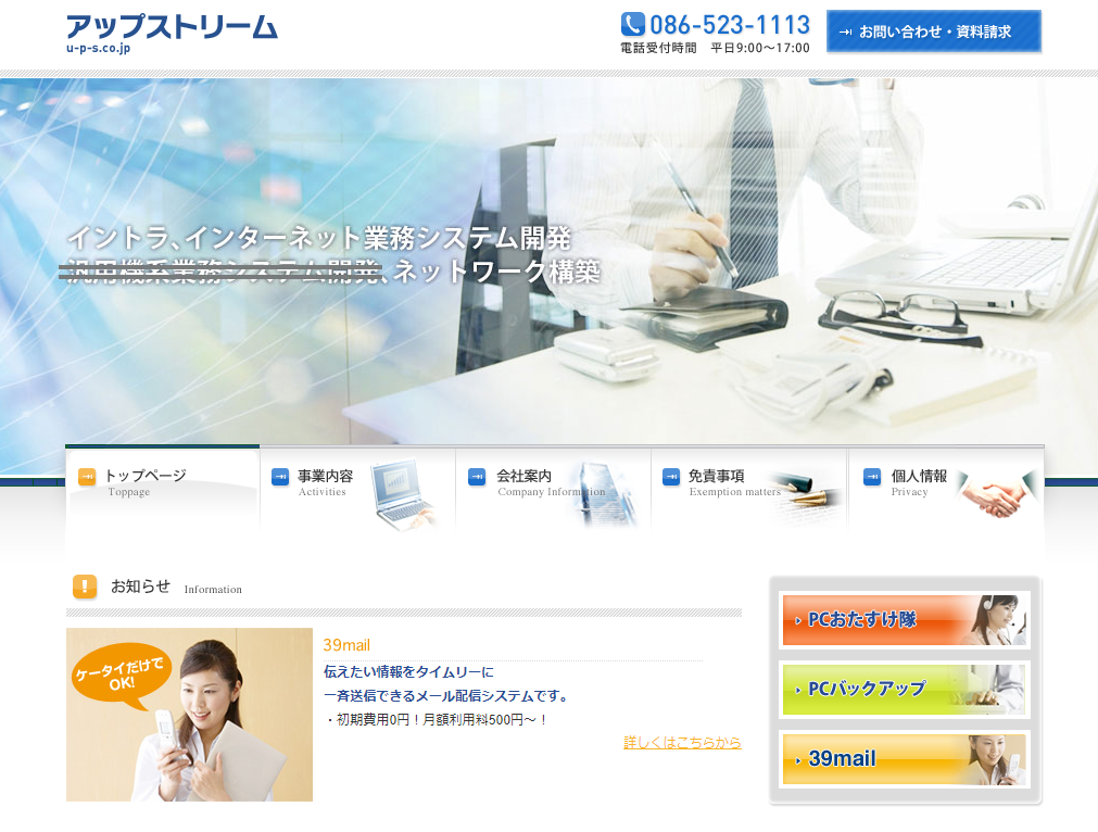 | アップストリームに関する問合せは info@u-p-s.co.jp 39メールに関するお問合せは info@39mail.com |