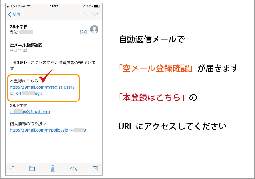 - "本登録はこちらURL"にアクセス