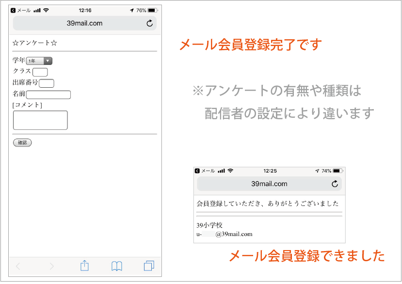 - 自動返信で"登録確認メール"が届きます